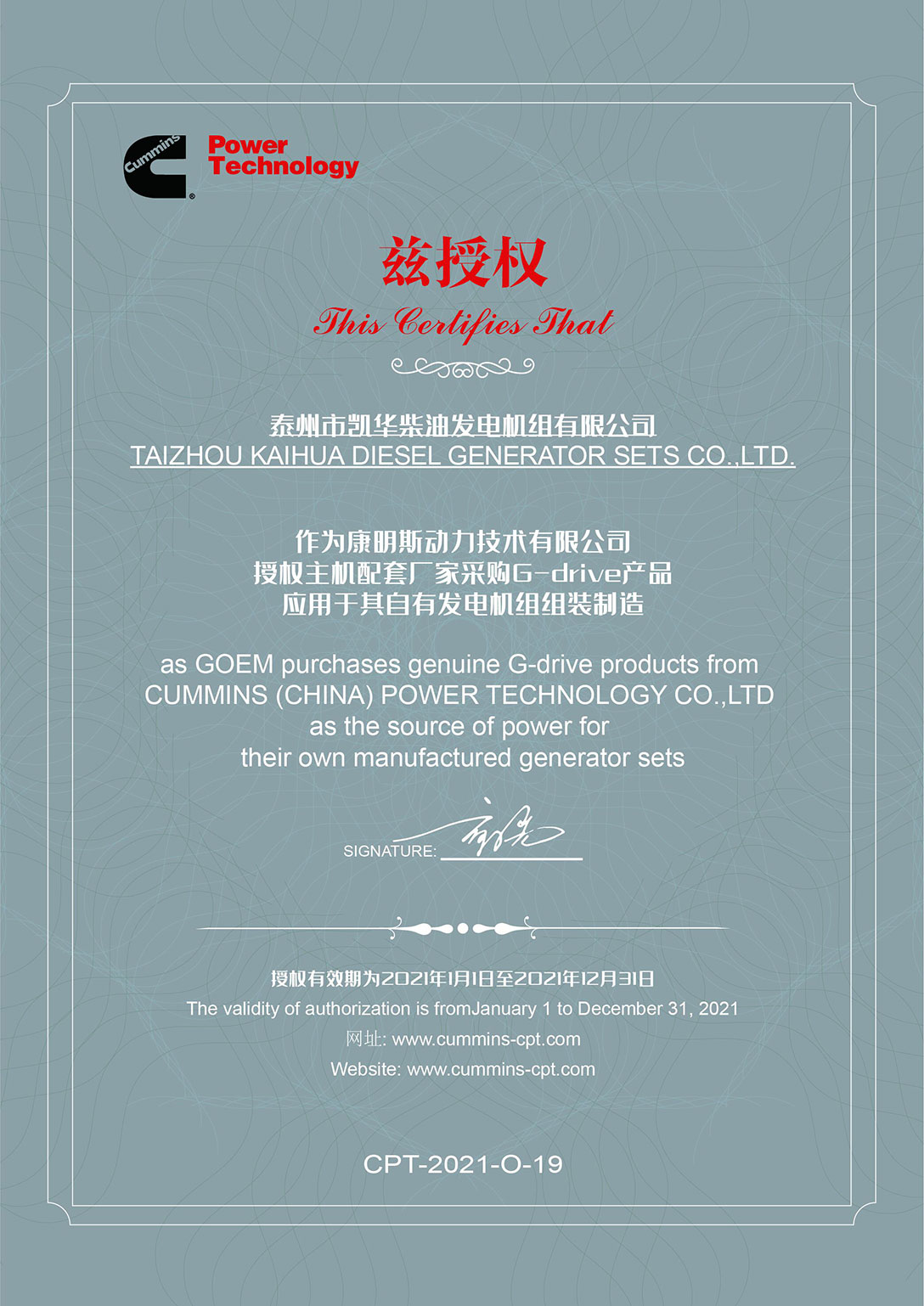泰州市凱華柴油發(fā)電機(jī)組有限公司創(chuàng)建于2003年,是一家集柴油發(fā)電機(jī)組燃?xì)獍l(fā)電機(jī)組的研發(fā)、生產(chǎn)、銷售為一體的高新技術(shù)民營(yíng)企業(yè),公司座落于“漢唐古郡,淮海名區(qū)”,具有“鳳凰城”美稱的祥泰之州——江蘇省泰州市,地處中國(guó)經(jīng)濟(jì)最發(fā)達(dá)的長(zhǎng)三角經(jīng)濟(jì)圈,水陸空立體交通,地理位置十分優(yōu)越。公司目前注冊(cè)資本金11800萬(wàn)元人民幣,生產(chǎn)基地占地六十畝,現(xiàn)有各類高素質(zhì)員工一百多名,專業(yè)技術(shù)人員達(dá)46人,其中高級(jí)技術(shù)人員16人,年銷售額近6億元。 公司主營(yíng)產(chǎn)品:3~3000KW陸用柴油發(fā)電機(jī)組,15~600KW移動(dòng)拖車電站,12~1000KW船用應(yīng)急柴油發(fā)電機(jī)組,各種靜音型、中高壓、多機(jī)并聯(lián)、燃?xì)獾忍胤N機(jī)組以及進(jìn)口系列柴油發(fā)電機(jī)組,可滿足不同客戶的一切電力需求,還可滿足用戶不同電壓、不同頻率的要求。凱華公司是康明斯品牌的授權(quán)代理商,專業(yè)生產(chǎn)供應(yīng)康明斯柴油發(fā)電機(jī)組。